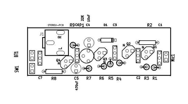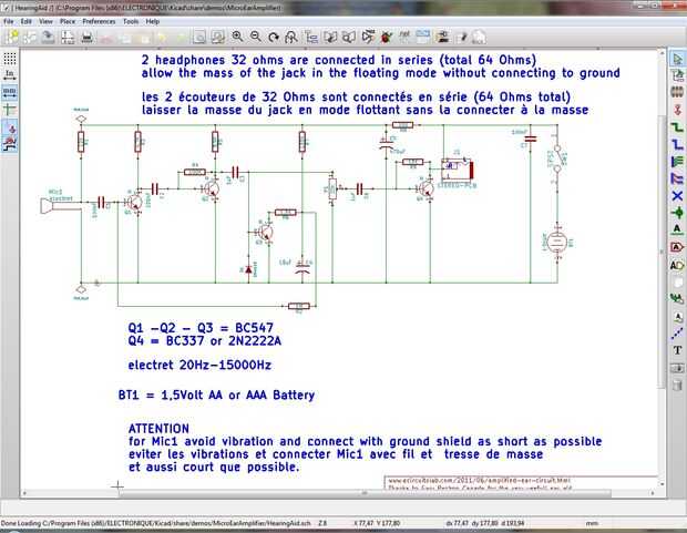Este pequeño amplificador opera con 4 transistores, los primeros 2 amplifica el micrófono, la tercera actúa como control automático de ganancia que permite un nivel constante, automáticamente se debilitan fuerte sonido automáticamente se debilitan y sonidos bajos se amplifican un potenciómetro de control de volumen para la determinación del sonido antes de la amplificación a través del transistor cuarto.