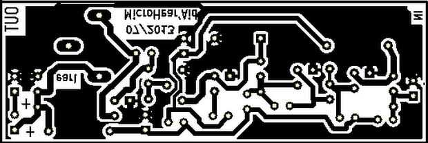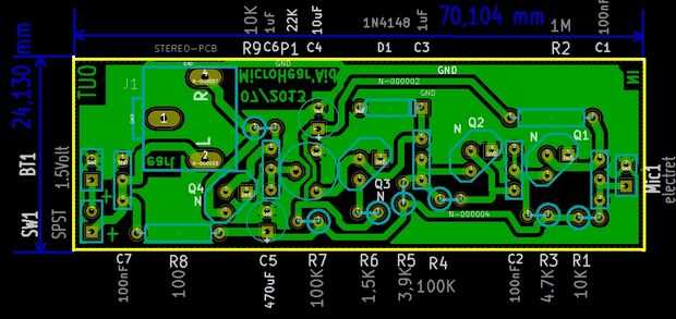 Así que te aconsejo el PCB para un buen entendedor elija un micrófono de electret de buena calidad (ancho de banda de 20 a 16.000 Hz, por ejemplo) la conexión del micrófono debe ser tan corto como sea posible y de buena directividad y aislar ruidos rodeada el micrófono en un poco de espuma fino y han puesto en un trozo de bolígrafo 1 cm de longitud.
