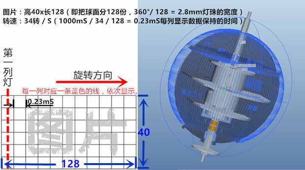 Una fila de LED puede cepillar la entera esfera, es porque el ojo humano para ver el cambio en la frecuencia superior a 24 fotogramas por segundo, generará sombra residual (agitado movimiento de su mano ~).