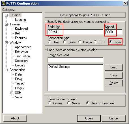 Utilizo el software PuTTY para recibir los datos desde Arduino. (Por supuesto también se puede utilizar el Monitor de Arduino Serial, el resultado será el mismo!) Por supuesto, utiliza la conexión USB, a través del puerto serie virtual.