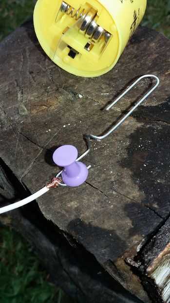 PIN del clip de papel a un registro o a otra base no conductora. Cuando usted presiona en la parte superior del clip de papel debe tocar la base y el resorte hacia arriba cuando se libera. Este es el primer terminal.