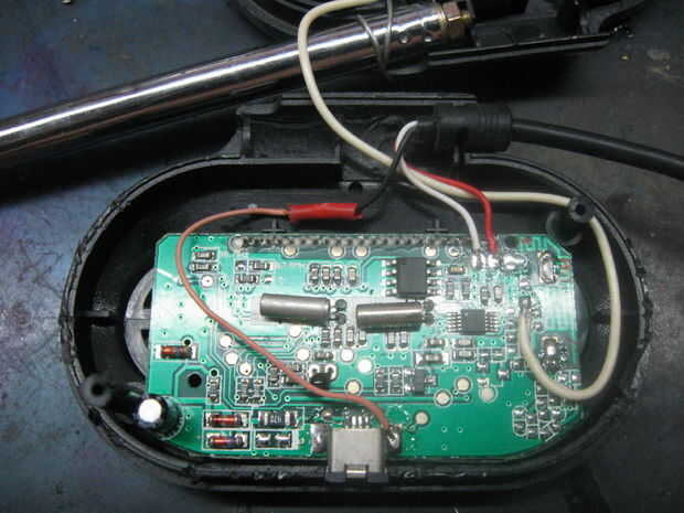 Conecté el terminal rojo y blanco a la Junta pero no conecto a la antena interna mientras pensaba en que la RF sería dividido a la antena a bordo.