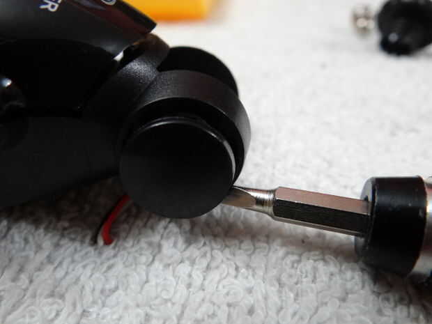 1. Procedemos a sacar los tornillos indicados en la imagen con los destonrilladores de precisión(cuidando de no rodarlos), tambien debemos desenroscar la punta del pivote donde se conecta al auto;