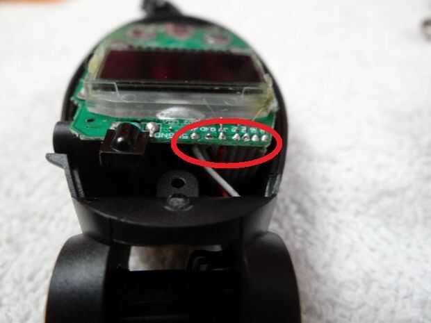 4. Con la pistola de silicona caliente, eche silicona en el aria marcada con un circulo rojo en la Plaza verde, esto servira para proteger los cables de se rompan en ese seccion
