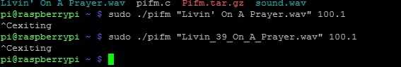 Por ejemplo: sudo. / pifm livin_on_a_prayer.wav 100.1