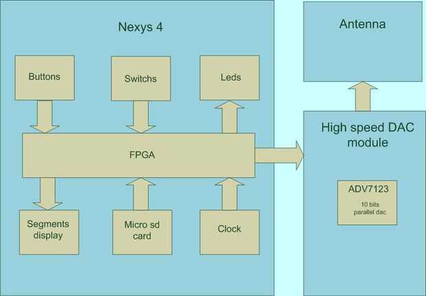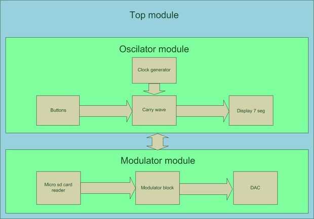 Segundo módulo utiliza el cos onda y algunos datos binarios de la tarjeta micro sd para modular estos datos. Esta parte no está implementada todavía.