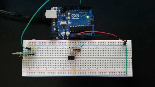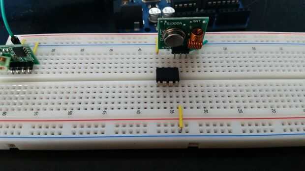 Conectar el transmisor, receptor y Attiny85 así que corren alimentación de Arduino. Luego enchufe el Arduino en la computadora y abra al monitor serie. Si el proyecto está funcionando correctamente, verá el código "2761" impreso una y otra vez en la ventana.