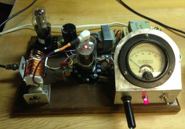 Se trata de un simple transmisor QRP modelado después de un esquema de y manual de la ARRL viejo. Tengo los manuales que se remonta a 1950 y los proyectos mayores están mucho más interesantes para mí. Tal vez es el resplandor de los tubos o el calor que producen. realmente reconfortante ahora su frío aquí en NY. utiliza un cristal pero que había construido un par de unidades de vfo DDS usando módulos baratos que tengo de eBay que quiero probar con ella. Antes de que usted incluso considere construir algo como esto debe saber cómo proteger usted mismo y otros de los voltajes letales aquí. Una caja de plexiglás con ventilación sería buena o una jaula de metal preforated. Esto no es para tímidos o con niños o mascotas en la casa.