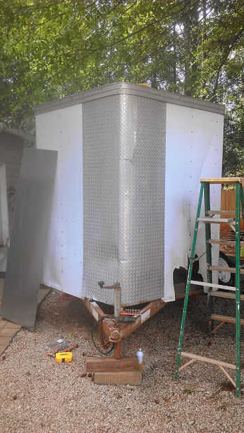 Después de tener un 16' remolque de embarcaciones de carga cerrado sentado en el patio de mi casa durante 7 años sin hacer nada pero almacenar madera extra hemos decidido era momento de reutilizar y utilizarlo para lo que quería-A Toy Hauler del Harley. Después de mirar por lo que han hecho otras personas, se encontraron no demasiado que mucho fue documentado de principio a fin. Esperamos poder completar esa tarea. Hasta ahora el plazo es alrededor de un año de los fines de semana y las tardes de verano después del trabajo pero la intención es sacar en él próxima primavera y prueba le hacia fuera.