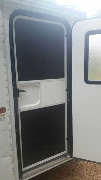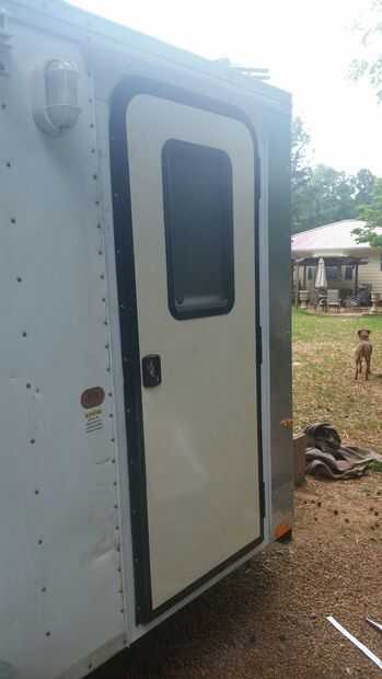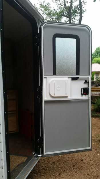 Comprado una puerta usada de RV de Ebay para $130,00 más gastos de envío para un total de 215.00. Tenía que hacer algún trabajo del metal de lujo y adornos, pero fue capaz de instalar la puerta sin bombos y platillos. La parte importante era asegurarse de que el tamaño era exactamente lo que necesitábamos.