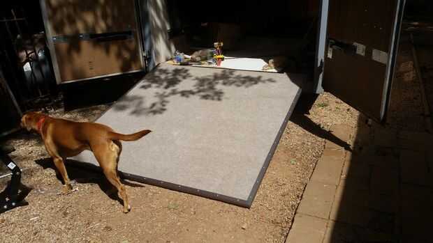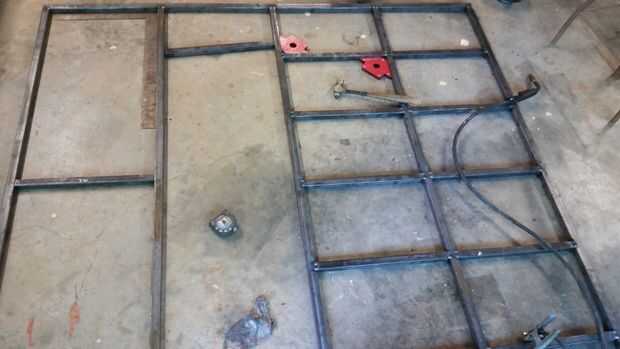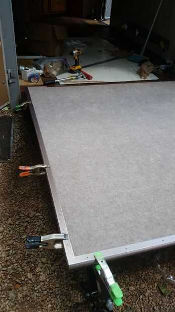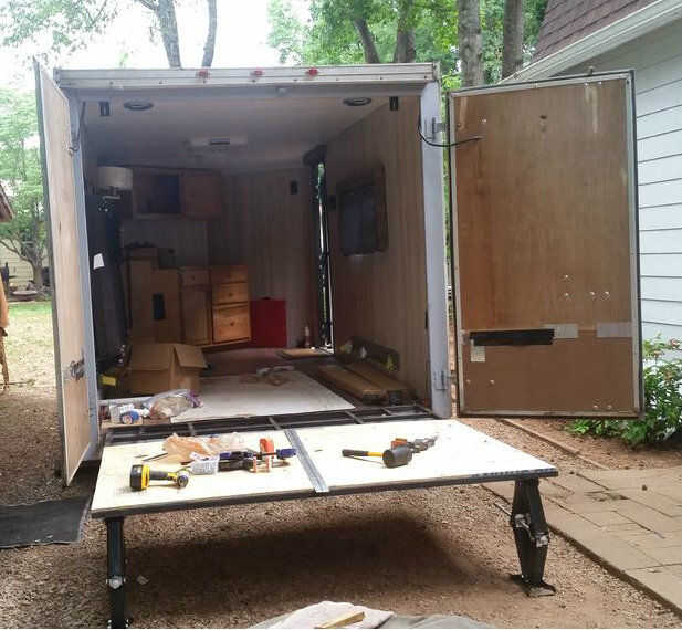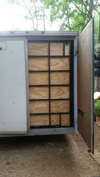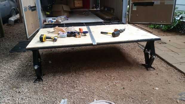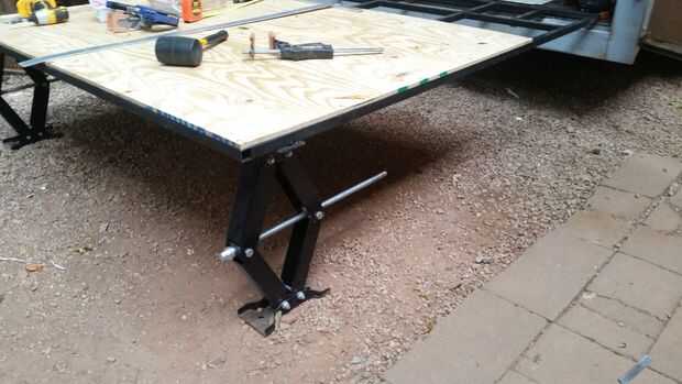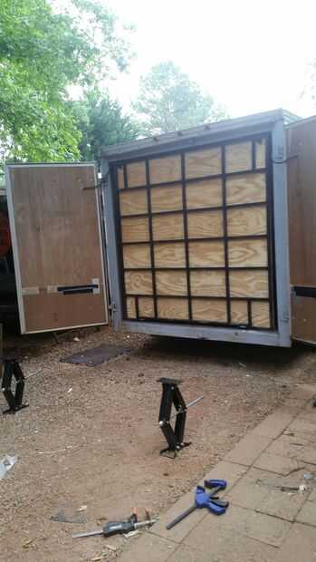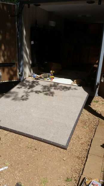 La base de la rampa fue soldado con autógena en las rejillas y cubierta con madera contrachapada. La madera contrachapada entonces fue cubierta con alfombras interiores y exteriores mantiene presionado por el pegamento y bordeado con molduras. La rampa se coloca para que se pliega dentro del remolque cuando se cierran las puertas.