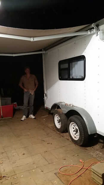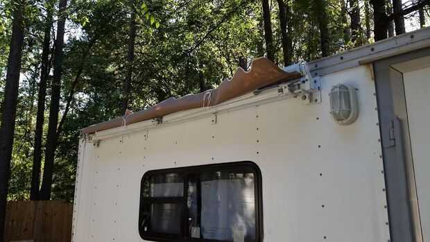 No creo que alguna vez nos encontraríamos con un toldo. En todo el internet buscando para utilizado, abusado cualquier tipo de toldo de un RV Nos vieron toldos caja pop ups y había casi decidido que podría ser un complemento en si decidimos necesitaba entonces entró en un Garden Ridge que fue siendo adquirida por otra empresa y BAM encontró algo que funcionara para $180,00. ¿La pregunta es cómo viajar? no sabemos aún, espero a no soplar ese dinero. Parece estar bien conectado. Reforzamos con una barra de metal encabezado en el exterior.