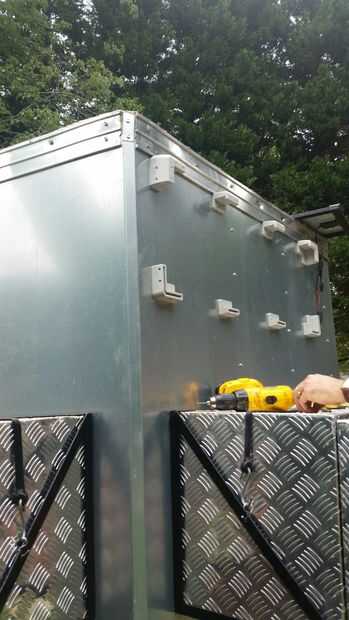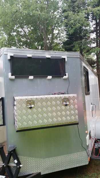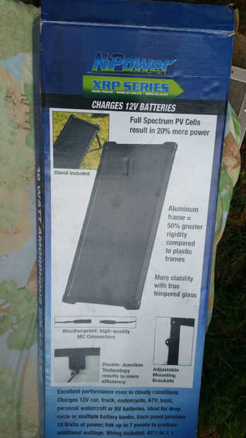 Colocación del panel para el remolque fue no lo recomendaría para la próxima vez. Hemos comprado un Sunforce universal panel solar sistema de montaje por $50.00. El borde del panel solar que compramos fue biselado para que "tweeking" era necesaria para que sea realmente sostenerse en. Yo no recomendaría comprar un soporte de montaje universal no funcionó. Hemos decidido poner la parte delantera del remolque y no estamos demasiado seguros acerca de la inteligencia de ese posicionamiento; vamos a ver cómo funciona. No queremos poner los agujeros en el techo del remolque para montarlo, así que decidimos ponerlo en el panel de metal más grueso que instalamos al principio. Estamos esperando que es lo suficientemente arriba para que la basura del camino no golpea el panel y ti por encima de las cajas de almacenamiento.