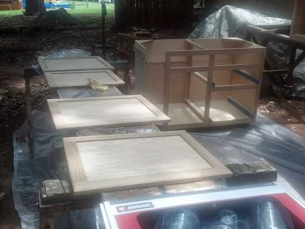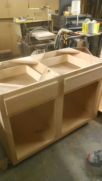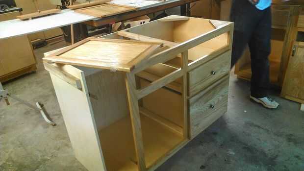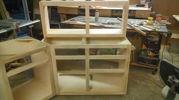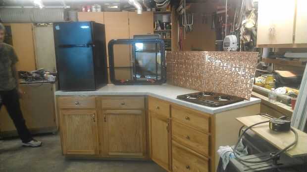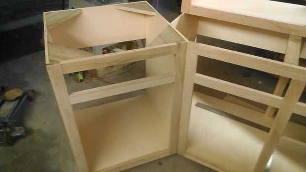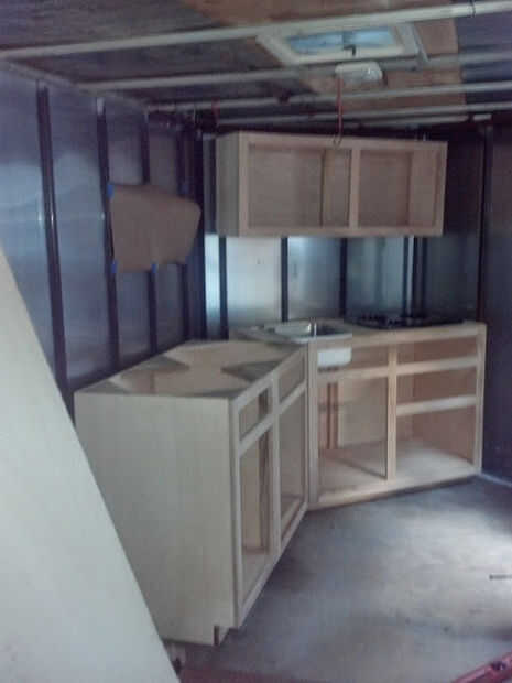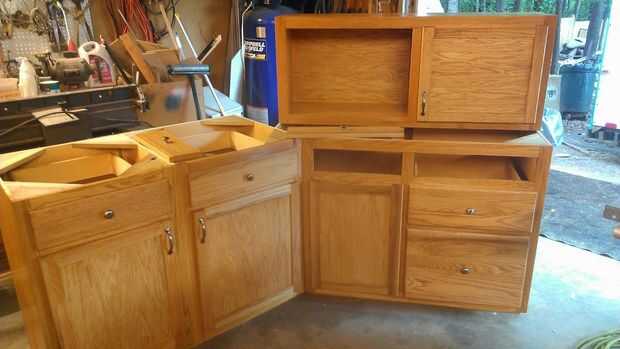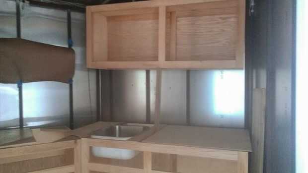 Aquí es donde el costo es un poco difuso. ¿Recuerdas cuando te dije que el trailer ubicado madera extra antes de que decidiera volver a fin de que? bueno, es por eso el costo es borroso. Tenía una colección bastante buena de buen roble para gabinetes y estaban todos encantados de poder usarlo. Decidimos pasar el dinero extra en las bisagras y mecanismos de cajón por lo que permanecerán cerraron en ruta - bien, es la esperanza de todos modos. Así que pedimos al mismo cierre de bisagras y mecanismos de cajón de Home Depot y creo que esto vale la pena el extra pasó. Estos taxis son mejores que los de la casa! Manchada y están listos para ir. Gabinete superior va a ser sujeta con una abrazadera de pared. Wallcleat