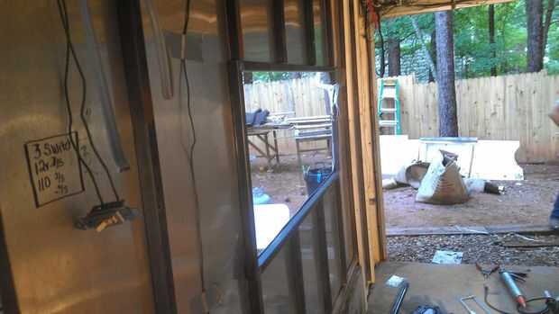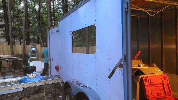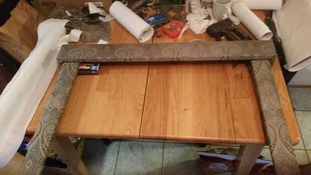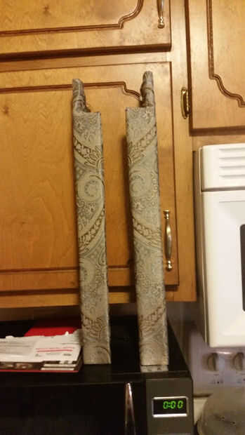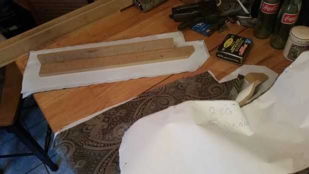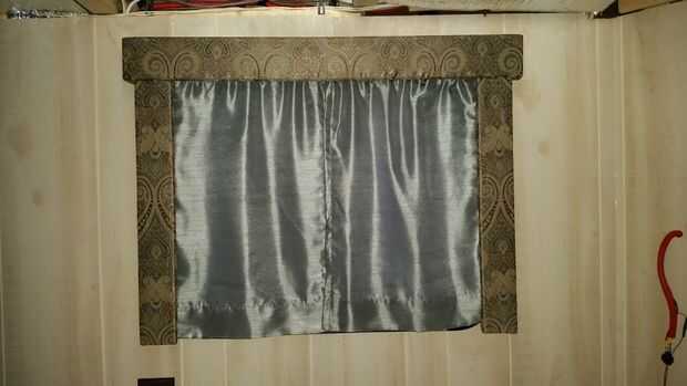 Hecho los tratamientos de la ventana con el tablero prensado - no! El tablero prensado casi no tome las grapas. tal vez necesitaba grapas diferentes, no sé - otra vez, utilizó lo que tenía y funcionaba bien en las secciones de madera. cubiertas en tela y algunos bateo tenían colocación alrededor de una colcha que hace excursión. Las cortinas y colgó con una varilla de tensión pequeña.