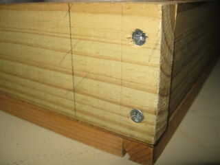 Alinee el 12-1/2 "x 12-1/2" x 1/4" fondo y seguro que a los 12-1/2" x 12-1/2" abrir caja con clavos del alambre.