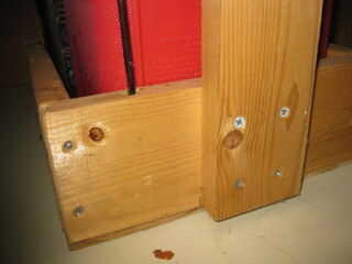 Ajuste el pasador (mango) en el adjunto a la caja en posición vertical. Arena para adaptarse si es necesario. Coloque el segundo en posición vertical a la manija y fijarlo a la caja con tornillos. Perforar agujeros en la parte superior de cada vertical y sólo en el mango. Fije la manija en los montantes con clavos pequeños. Pegamento de madera es una opción pero necesita aplicarla como la manija se incorpora a los agujeros.