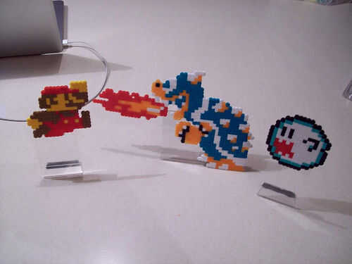 podría siempre has querido hacer arte de personaje de videojuego. ¿Cómo? Con esta técnica fácil.Se necesita:Cuentas PerlerPapel de planchadoHierroPlataforma (hacer las cuentas)Paso 1: Hacer el carácter video del juego que quieras desde las cuentas pe