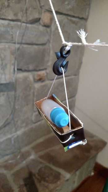 - Una cadena se ejecutó a través de los cuatro orificios para equilibrar la cesta.