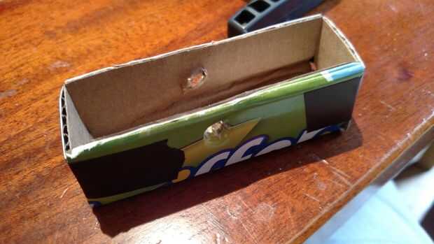 - Un pedazo rectangular de cartón, cada esquina tiene iguales cuadrados tamaño cortadas.