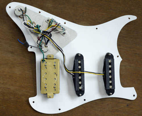 Aquí está un gran enlace blindaje que describe en detalle: www.guitarnuts.com . Esto incluye el cableado para la configuración estándar de 3-recolección de 'Strat' y fue mi referencia. Asegúrese de prestar especial atención a las secciones de choque eléctrico!