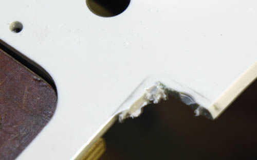 La mayor parte del golpeador orificios de montaje (en el cuerpo) necesita relleno. He usado pinchos de bambú, fijadas con pegamento de madera. Cuando seque, lijar al ras al cuerpo.