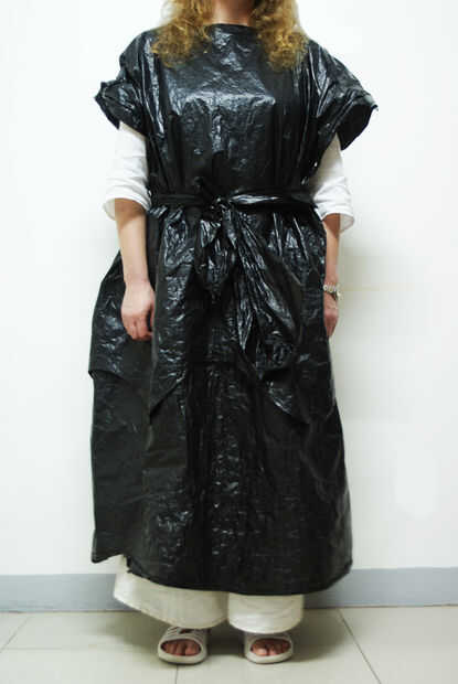 Ahora, intentarlo en y corte la parte inferior para que la capa no sea demasiado largo. Utilizar los desechos de plástico para ajustar una correa.