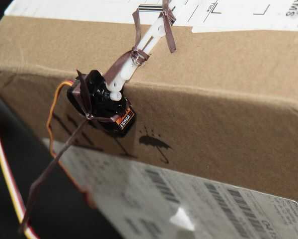 En el lado cerrado se colocó el Servo correspondiente, para que el movimiento de 90 ° permite fácil apertura y cierre (ADVERTENCIA! con el mini Servo en el starter kit de Grove, tienes que tener cuidado de posicionamiento y los grados de movimiento, o incluso un aparentemente leve de la capa de cartón cancán les obligan hacer quemar... y ocurre confía en mí!). El pivote fue creado mediante la combinación de dos palancas suministradas con servo tal como se muestra en la figura. En nuestro caso, la sujeción del servo se ha llevado a una cinta reciclada de la perforación a través de la cartulina. Los LEDs se han aplicado en la parte frontal de las cajas que luego se fijaron al lado (y muy bien decorado, como se puede ver!!;))