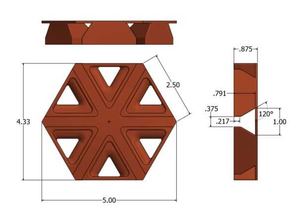 La base es una forma cara seis (hexagonal) que se podría llamar de la escuela tiene un total de ángulos internos iguales a 720 grados. Los 3 pasos en el trasmallo están centrados en los vértices del hexágono. De los caminos, a elegir una ranura de cola de Milano. Este surco se basa en una lección aprendida de mi impresión anterior (T-Slot) donde tuve que quitar la estructura de soporte sobre la ranura. Se ha añadido rondas a los bordes del centro que ayudan a mantener las diapositivas en la pista si entran a la sección central a un ángulo. Las bolsas alrededor de los parámetros son en su mayoría cosméticas aunque añaden un buen lugar para agarrar el trasmallo de debajo como usted está girando. He añadido principalmente para reducir el peso puesto que mi impresora (biblioteca) cargos $.25/gramo. Para referencia, todo el trasmallo costo ~ $22.
