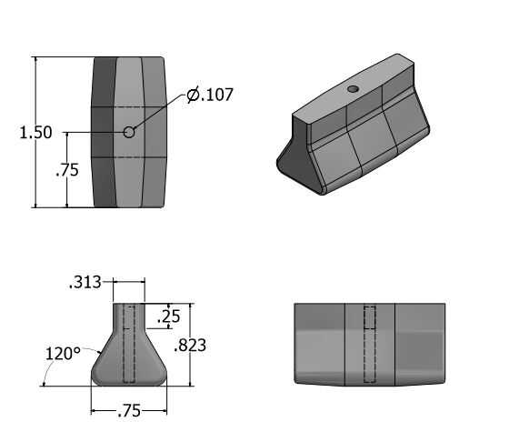 Las diapositivas fueron diseñadas para que coincida con los surcos con una separación de 1/32". He añadido chaflanes y rondas en las diapositivas para que pueda moverse más limpia. Tenga en cuenta que al mirar el dibujo, verá más de 1/32" de un juego de pulgadas. Las dimensiones finales son después de los disparos. Cada pieza de la corredera, el orificio está centrado en la parte superior y tiene un tamaño un tornillo #6.