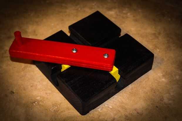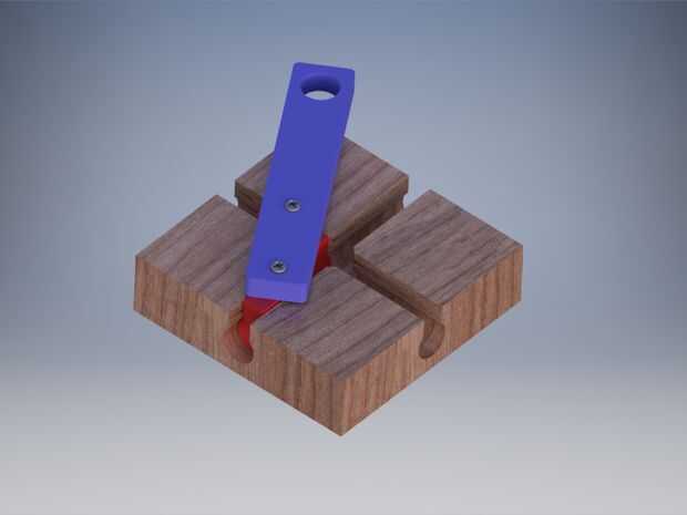 Sujete el asidero a las diapositivas con cabezas de pan #8. Este debe ser un flojo para permitir que las diapositivas pivotar alrededor de la manija. Probar. Si se une, utilice papel de lija para abrir las ranuras. Adición de rondas/chaflanes a las diapositivas también ayuda a mantener el trasmallo en la pista.