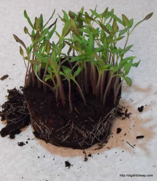 Puede frotar suavemente la parte exterior de la olla para obtener el suelo y las raíces para liberar desde el lado de la olla. Retirar de la olla se muestra que hay crecimiento de la raíz buena y que están listos para trasplantarse a una maceta individual pequeña.