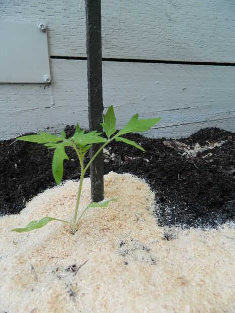 Agua abundante y aplicar superior el mantillo/compost/suelo de elección. Te darás cuenta que aquí he aplicado una fina capa de (producto gratuito) polvo de leña. Esto es porque tengo un poco de un problema de caracol y no les gusta el serrín. Si vas a hacer esto, no use madera tratada como pino tratado como los productos químicos pueden dañar tus plantas. Otra opción que he leído sobre es cáscaras de huevo machacadas. Los caracoles no les gustan o bien, ambas opciones también proporcionará nutrientes beneficiosos para el suelo!