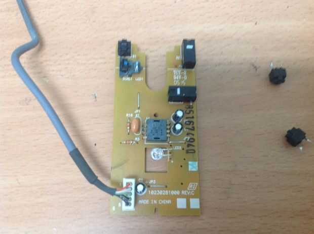 Para el botón izquierdo del ratón, el sensor de la rueda de desplazamiento tiene en el camino. Para compensar esto, sustituyó con el de la rueda de desplazamiento ya que no se como desgastado y hasta ahora trabajando. Ya que yo todavía quería un trabajo central del ratón, reemplacé con el otro interruptor del donante.