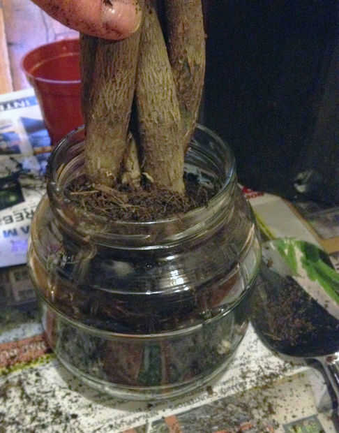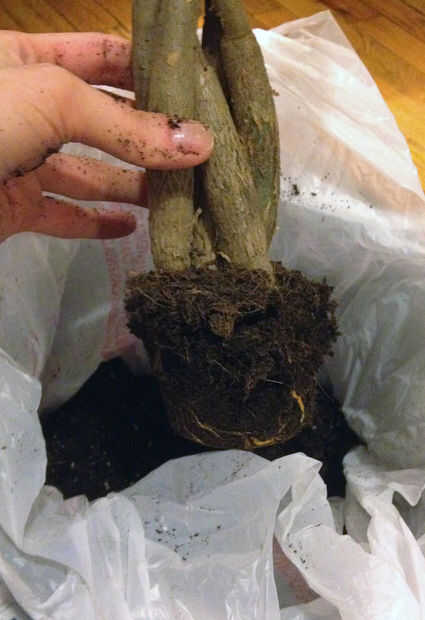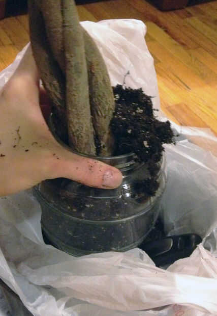 Para quitar la planta de la original olla de (plástico); Apriete suavemente los lados un par de veces hasta que sienta que afloje. Cuidadosamente la planta por es base y tire del sistema entero de la raíz y masa de la tierra juntos.