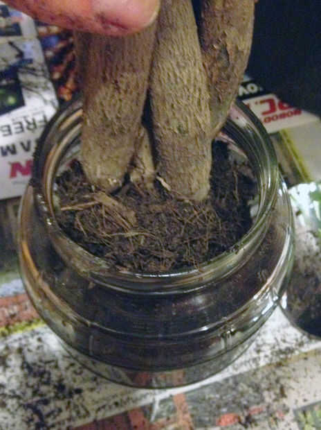 Establecer la planta en la maceta nueva y comenzar a añadir suciedad alrededor de la raíz o la suciedad total. Comprobarlo como usted y asegúrese de que la planta está sentado recto arriba y centrado dentro de la olla. Continúe añadiendo más suciedad, presionando suavemente en su lugar con los dedos.