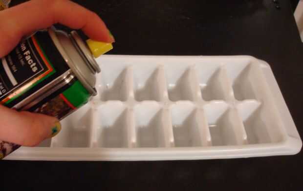 4. Rocíe la bandeja del cubo de hielo con aceite de oliva por lo que fácilmente puede sacar los bombones de chocolate