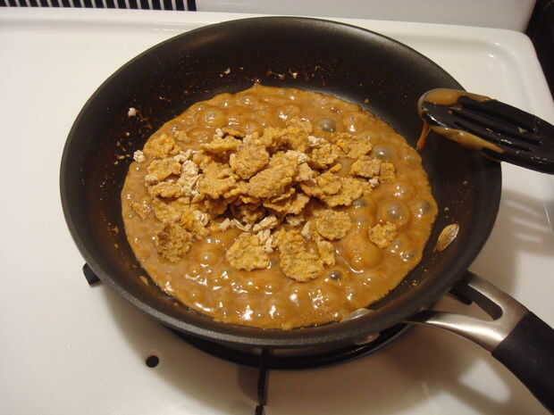 4. Añadir cereales en puñados y mezclar en malvaviscos derretidos