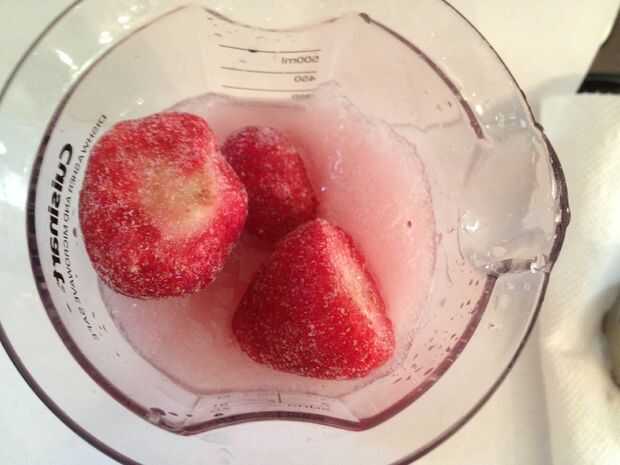 Entonces después de que mezcle la limonada de su elección añadir 3 congelado de fresas, mezclar.