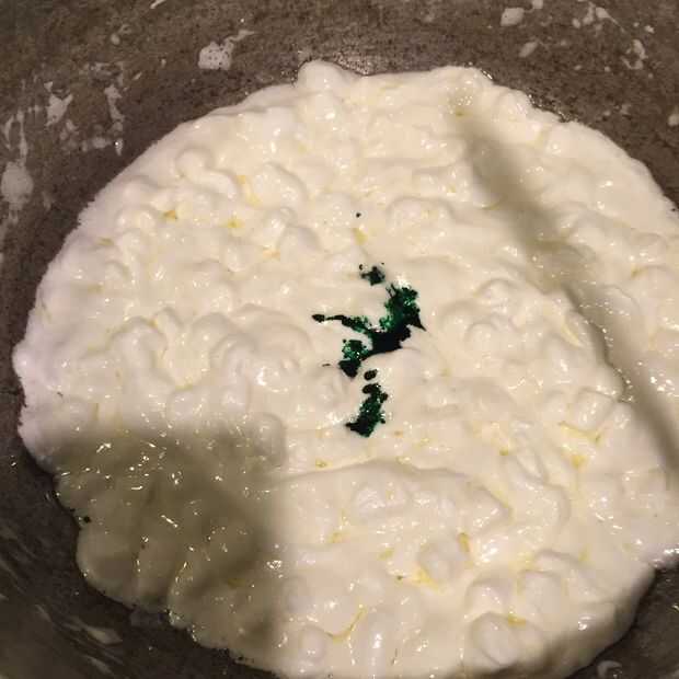 4. Añadir unas gotas de alimento colorante (mezclar bien)