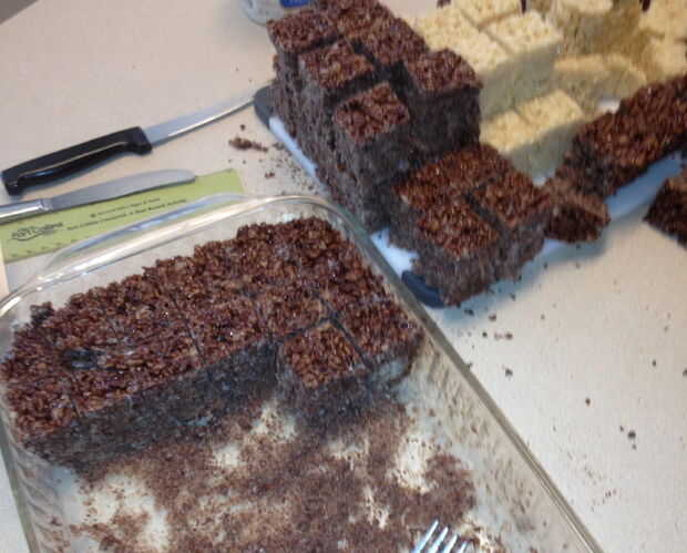 No necesariamente tienes que tomar todos los cubos hacia fuera, pero necesitan ser bien separadas de la sartén. También, hubo un poco de polvo de arroz chocolate dejado atrás; Limpiar esto con una toalla de papel antes de pasar al siguiente paso.
