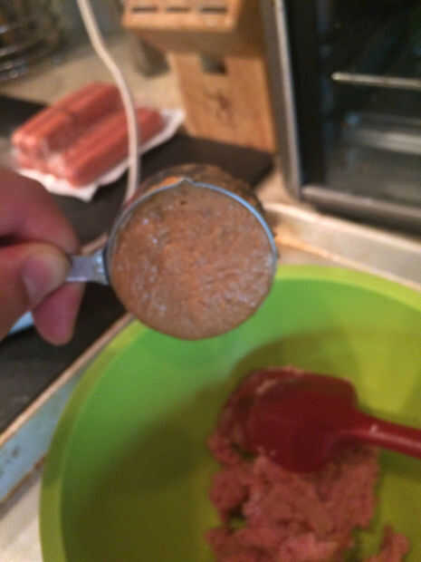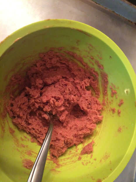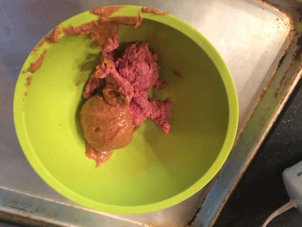 Paso 3: Añadir la mantequilla de maní a la papilla de perro caliente... Precalentar el horno