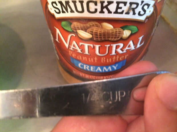Añadir 1/4 taza mantequilla de maní a perros calientes y mezcla