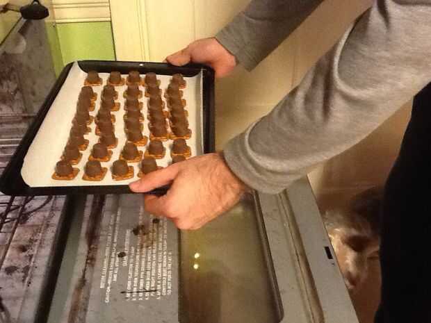 Ahora que el horno ha tenido tiempo para calentar para arriba, puede colocar la bandeja en el horno para que el chocolate se puede derretir.