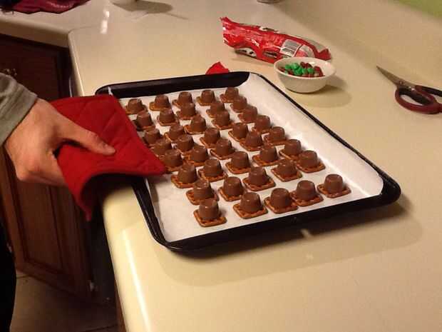 mi madre Santo me enseñó esta Navidades tres hace. Barato y sencillo y delicioso.Esta es la lista de cosas necesarias:Bandeja para hornear galletasMini pretzelsCaramelos de roloPapel de ceramitades de nuezSal marina (opcional)hornoelectricidadDESCARG