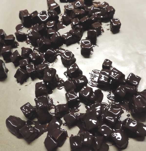 Luego lo pongo en papel de cera para descansar y endurecen. Luego pongo a la reconstruccionada poco en el frig o en el congelador (en parte para protegerlos de gente pasando por la cocina y en parte para acelerar el endurecimiento del chocolate)