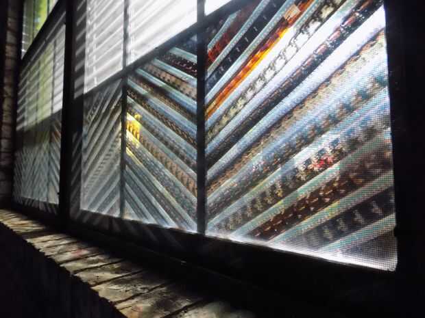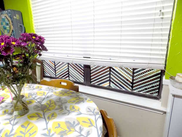 La ventana en el comedor es una fuente primaria de luz natural, por lo que nos gusta dejar las persianas abiertas en la parte inferior. Sin embargo, siempre he disgustaba cómo se puede ver en la noche cuando las luces estén encendidas tan claramente. Después de encontrar un rollo de película de un trailer de la película, decidí que había encontrado la manera perfecta para bloquear la vista sin necesidad de bloquear la luz. Es fresco loco, totalmente funcional y fácil de hacer.