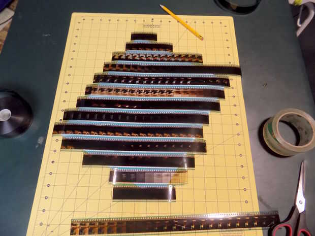 Alinee la pieza siguiente de la película con el borde de la primera y repita hasta que usted haya cubierto totalmente la plantilla de papel.