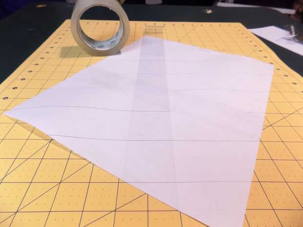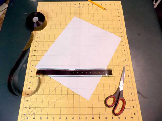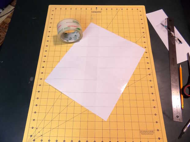 Ahora, coloque un pedazo de película sobre la plantilla, asegurándose de alinear con una de las líneas que has dibujado y presione hacia abajo sobre la cinta.