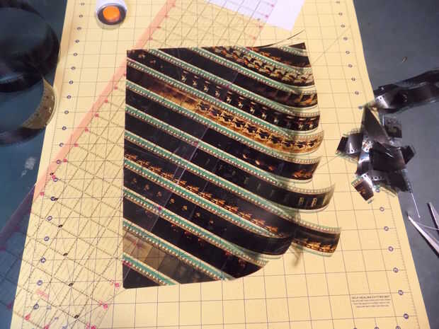 Una vez que has cubierto la película con la cinta, retire la película grabada de la almohadilla de corte y dale la vuelta.